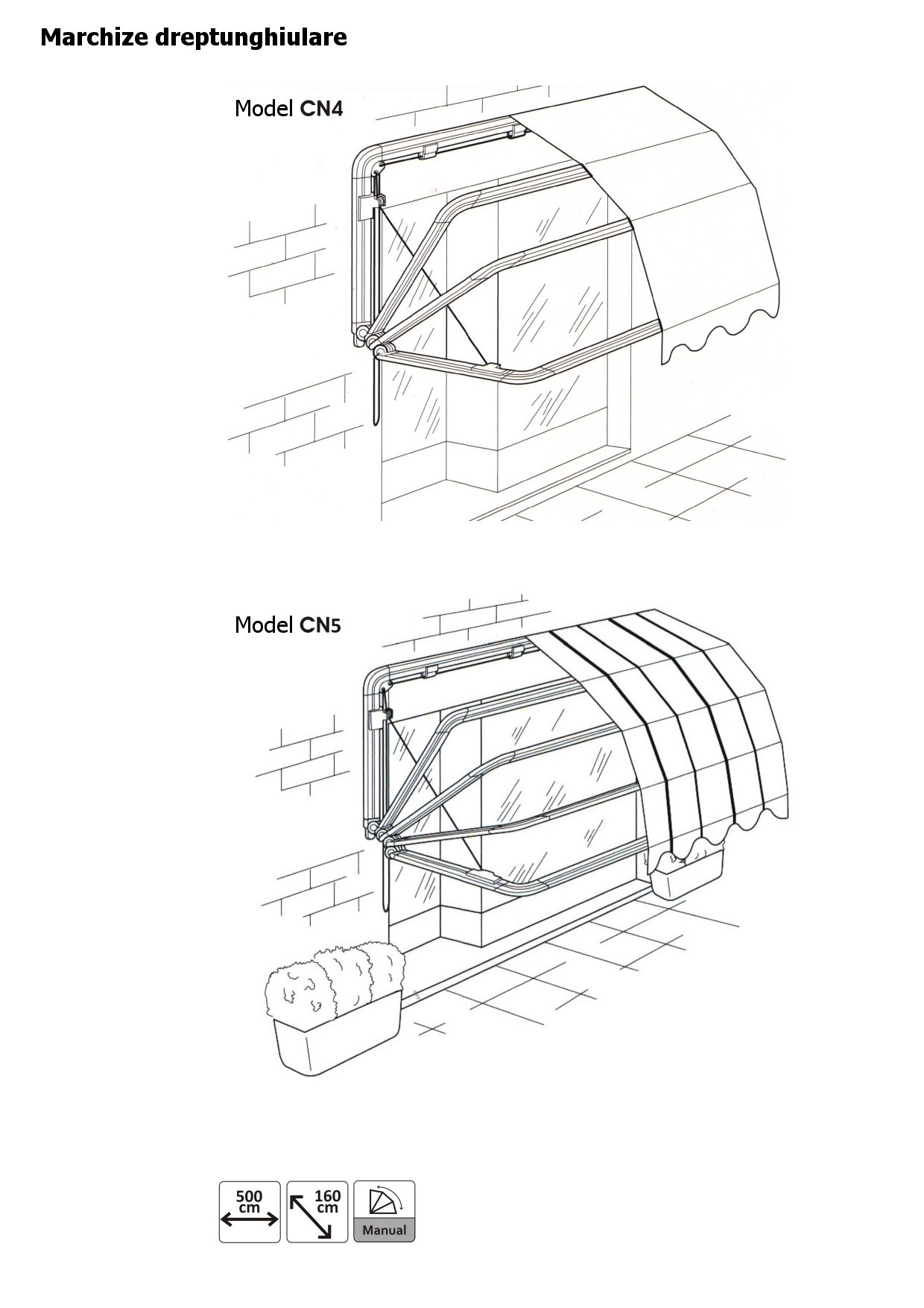 Marchiza cupolă dreptunghiulară este o soluție versatilă și elegantă, ideală pentru a decora ferestrele de forme standard. Aceasta are la bază un cadru din aluminiu de formă dreptunghiulară și este acoperită cu pânză acrilică Dickson (Franța). Marchiza poate fi ușor deschisă sau închisă cu ajutorul unui șnur.